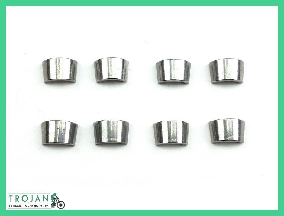 8 pieces (set). High quality hardened and barrel polished valve collets to suit Triumph and BSA engines. Pre-unit, unit etc.