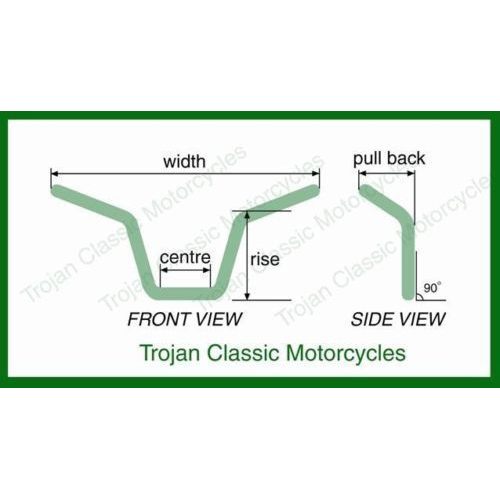 Approx. Measurements. Width 710mm, Rise 100mm, Centre 100mm. Pull back 95mm. Please see the photos to translate dimensions.