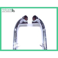 2 pieces (left and right side). High quality chrome finish and top of the line quality header pipes to suit Triumph TR7, T140 1973-82 unit 750 models. To fit spigot type exhaust port head.