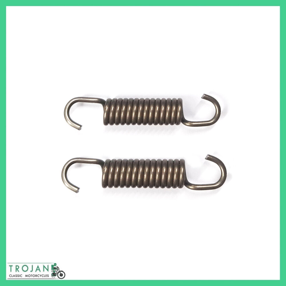 2 pieces (1 pair). High quality rear brake shoe return springs, to suit many Triumph and BSA drum brake models with conical hub. May suit other applications.